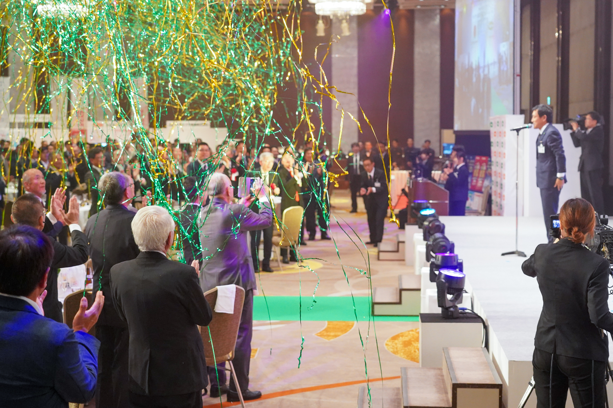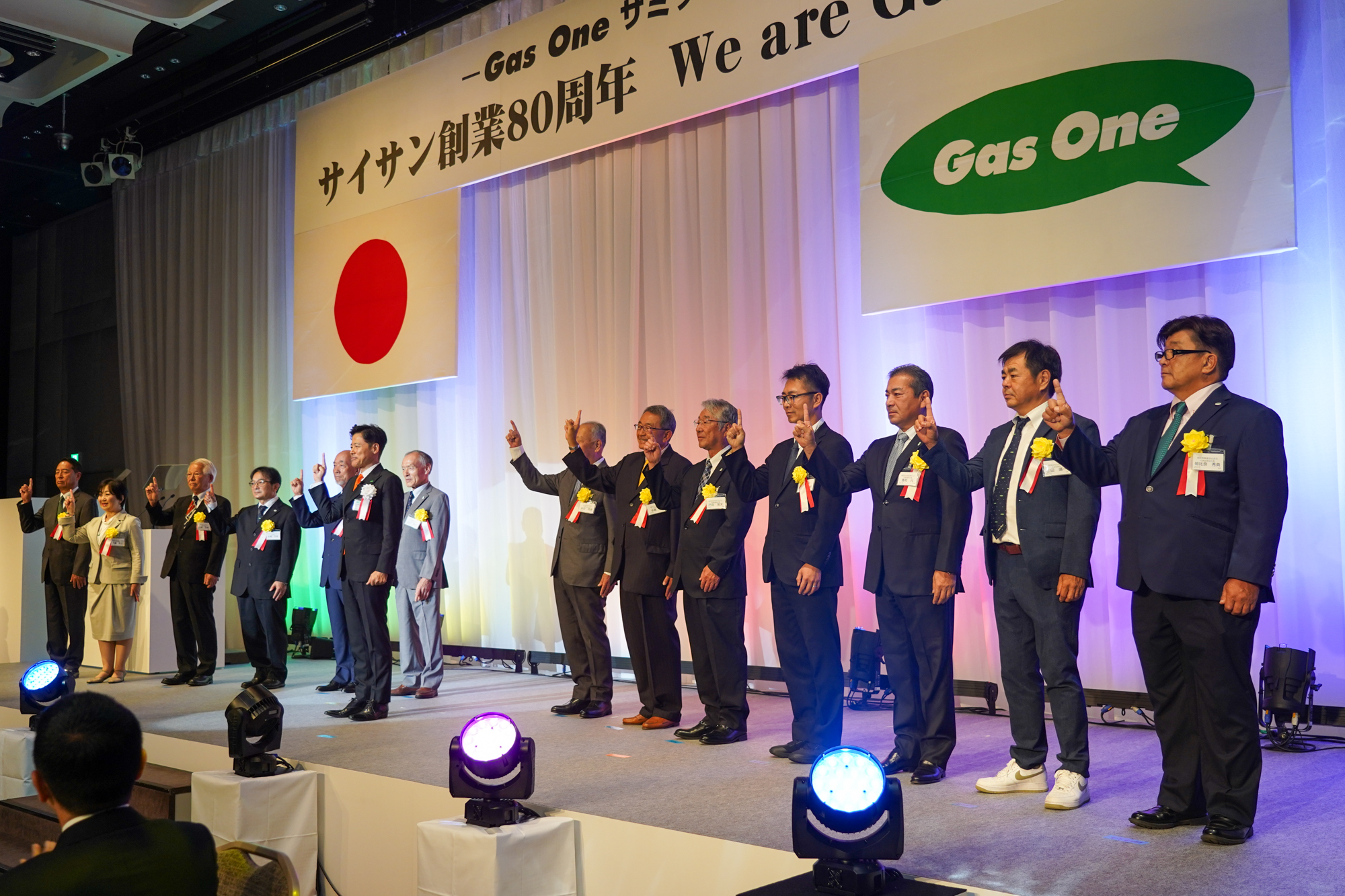 300名をご招待し、今年度のスローガン「サイサン創業80周年 We are Gas One!」や、方針、販売店様ご支援策の発表と、販売店様のキャンペーン表彰を執り行いました。