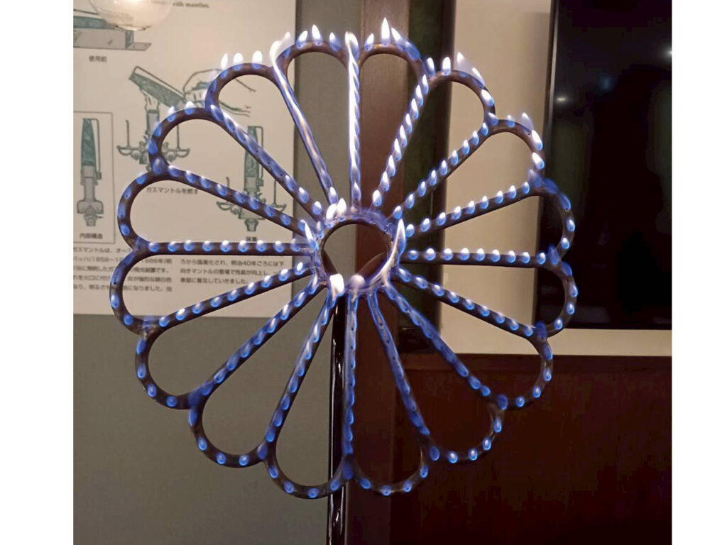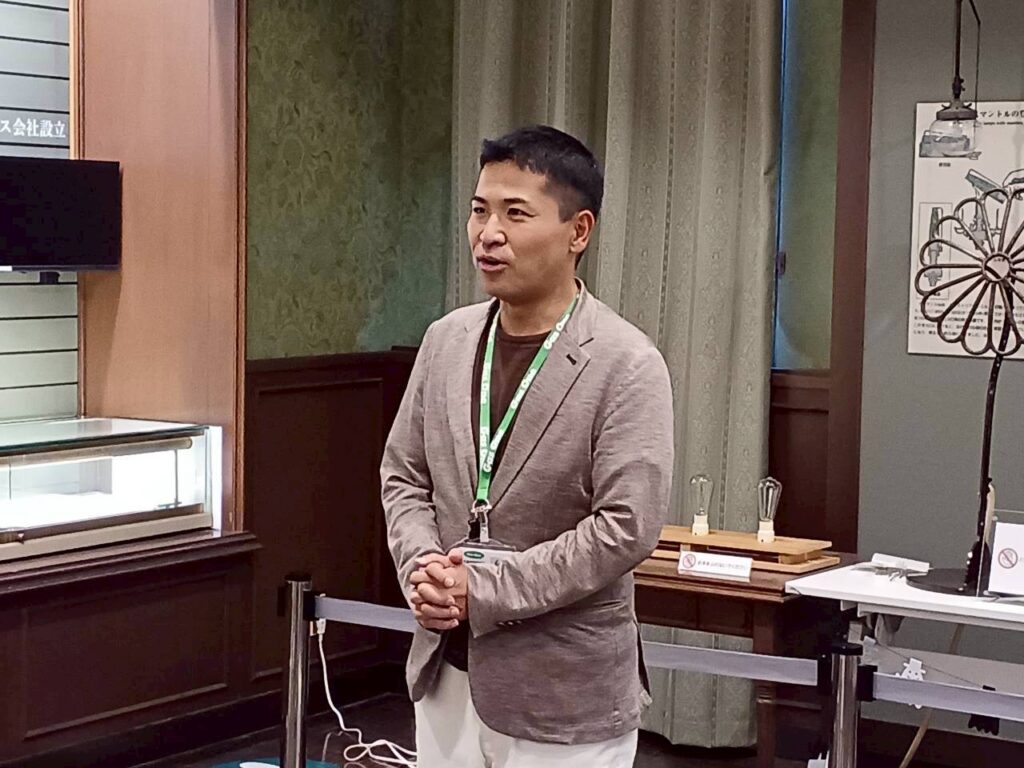 当クラブは発足時より会員の切磋琢磨と自主運営を基幹とし、毎年春と秋に研修を実施している。今回も、各地区から会員が参加し。ガスミュージアムでは明治期のレンガ建築「ガス灯館」、「くらし館」を見学した。ガス利用のはじまりから現代までの歴史が展示品を通じ紹介され、魚尾灯や花ガスの実演には会員も興味深く見入っていた。