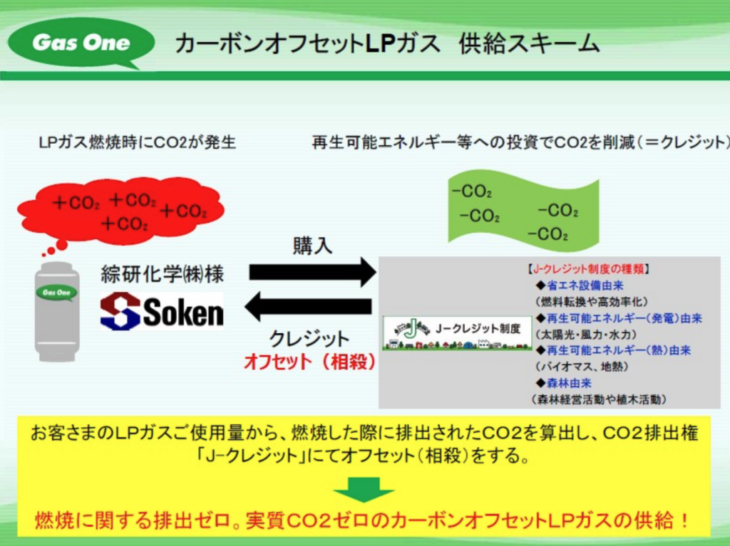 今回供給を開始したカーボンオフセットLPガスは、経済産業省、環境省、農林水産省が制度管理者を務めるJ-クレジット制度を採用しており、CO2排出量を実質ゼロとして温対法への報告が可能であること及び非化石エネルギー使用割合として省エネ法定期報告書への報告が可能であることが大きな特徴の一つとなっております。11月1日(土)からのLPG供給で、330t-LPG(990t-CO2)分のCO2排出量を削減できる見込みです。