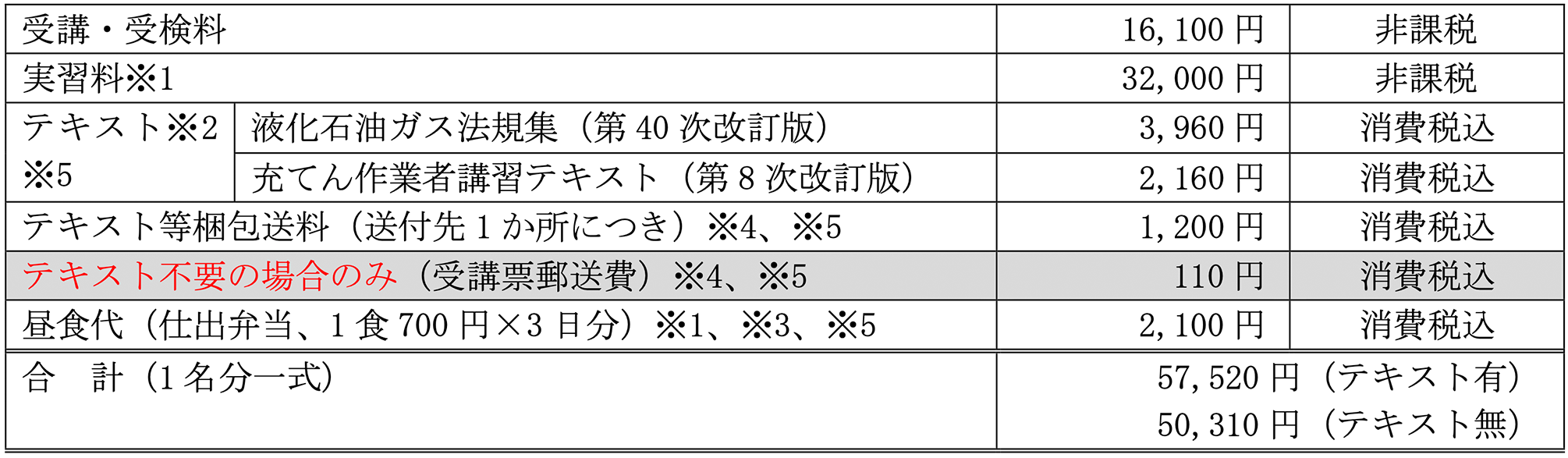 ※4 テキストをご購入の場合はテキスト等梱包送料を、テキスト不要の場合は受講票郵送費として郵便切手代(110円)を加算してお振込みください。